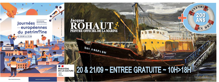 Programme spécial : Nouvelle exposition d’art avec Jacques ROHAUT, peintre Officiel de la Marine – Focus sur le Sauvetage en Mer – médiation volante avec les bénévoles autour des diverses thématiques historiques du musée – jeu-découverte/enquête pour les enfants sur les dernières collections acquises – promotions et nouveautés à la boutique et grande tombola !
